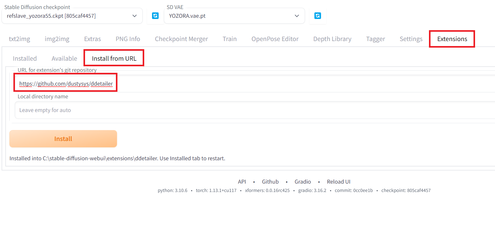 이후 WebUI를 실행한 후 Extensions를 누르고