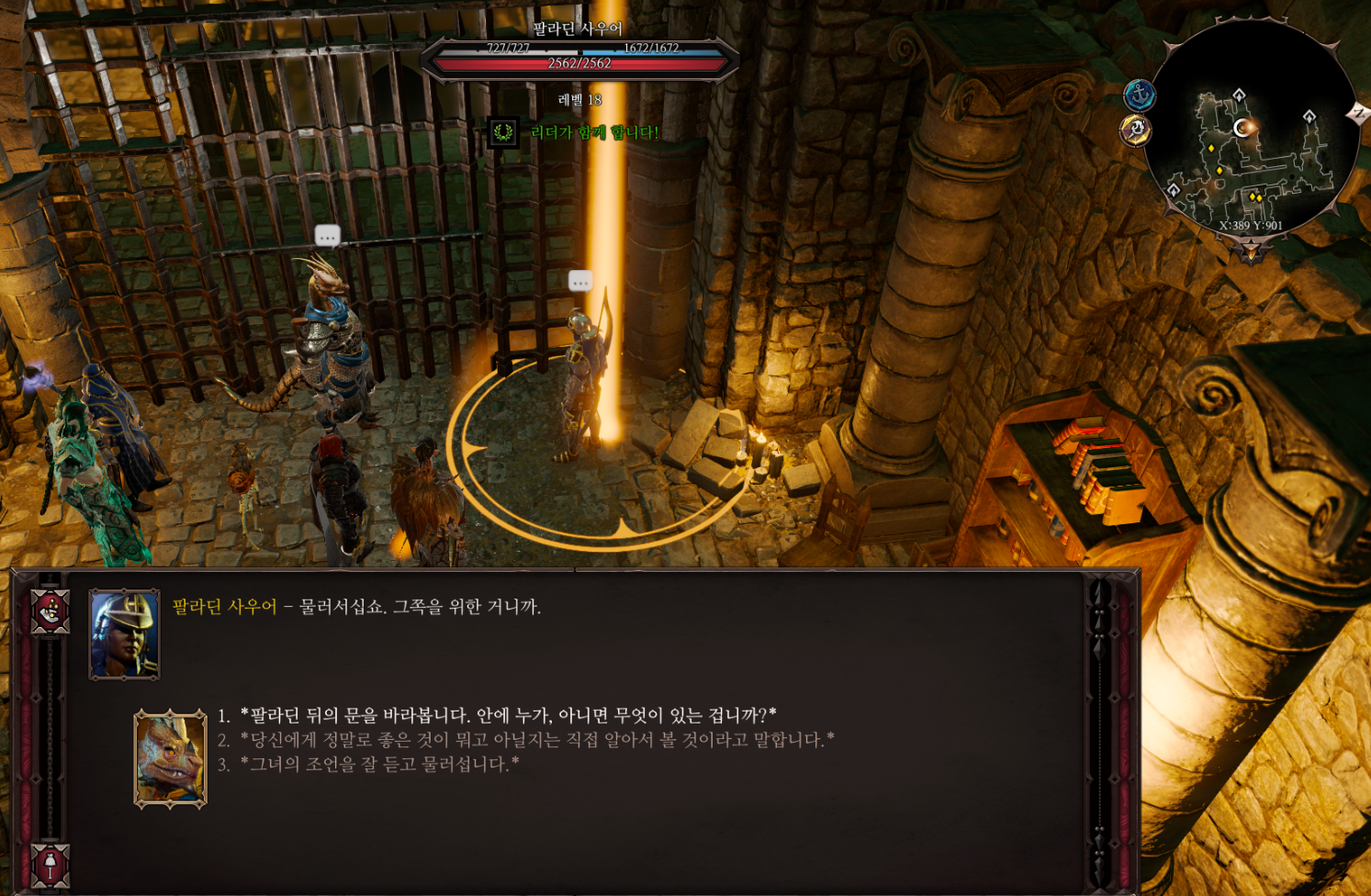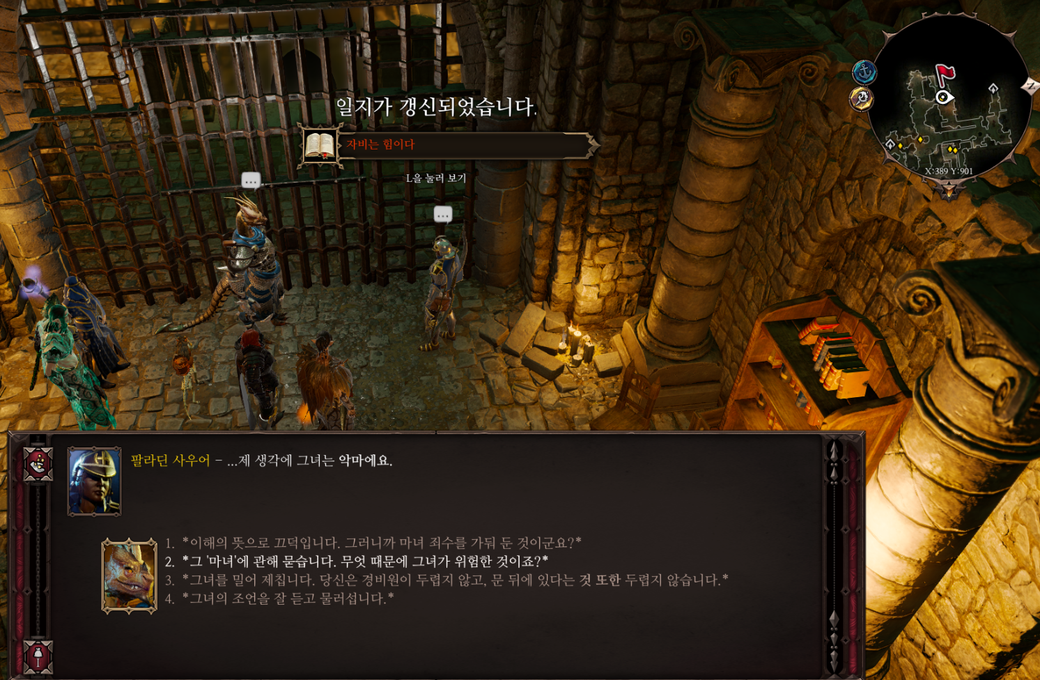 마지스터 감옥에서 팔라딘 사우어에게 말을 걸면
