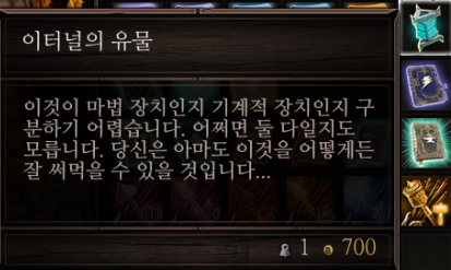 게임 진행하다가 보면 이터널의 유물을 볼 수 있을텐데