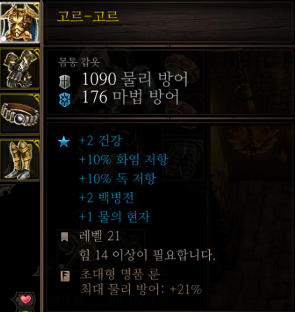 갑옷 상의 + 이터널의 유물 = 10% 대기 저항, 물리 방어력 추가