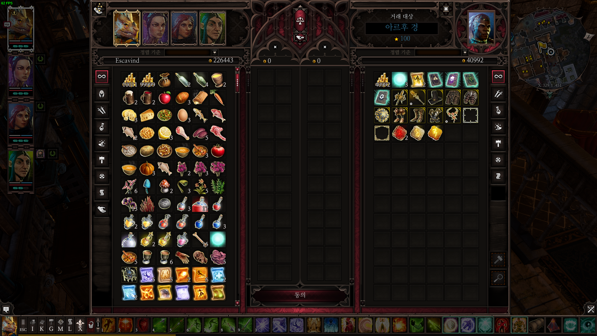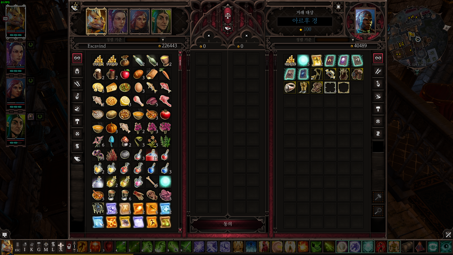 한번 상인을 클릭 후 거래를 누르면
