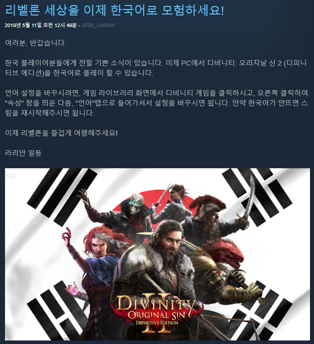 이제 공식 한글화 버전이 출시가 되었는데