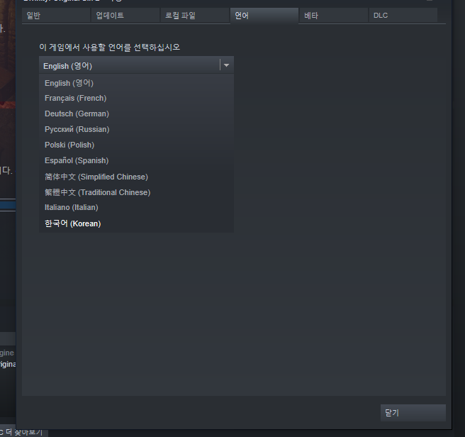 스팀을 재시작하거나 무결성 검사를 통해 정식 한국어 버전으로 바꿔줄 수 있다