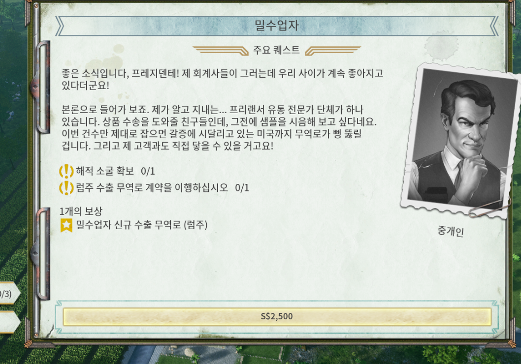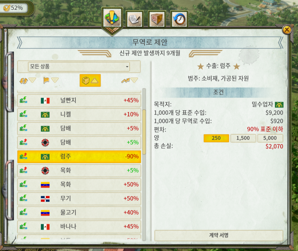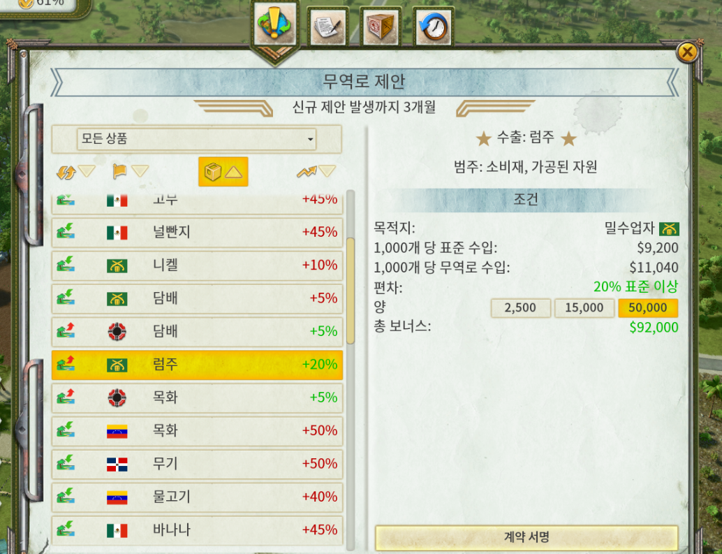 무역로 제안에서 -90% 짜리 럼주 계약을 해 주면 된다