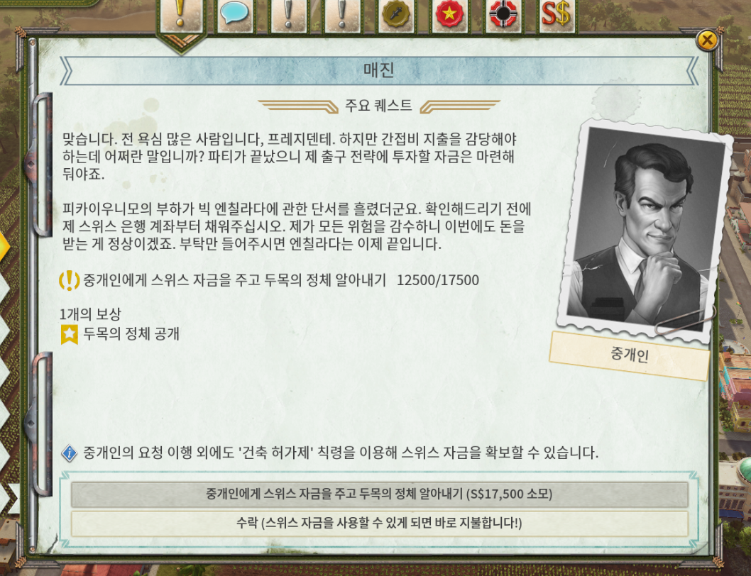 게임 클리어를 위해서는 스위스 자금을 많이 모아놔야 하는데