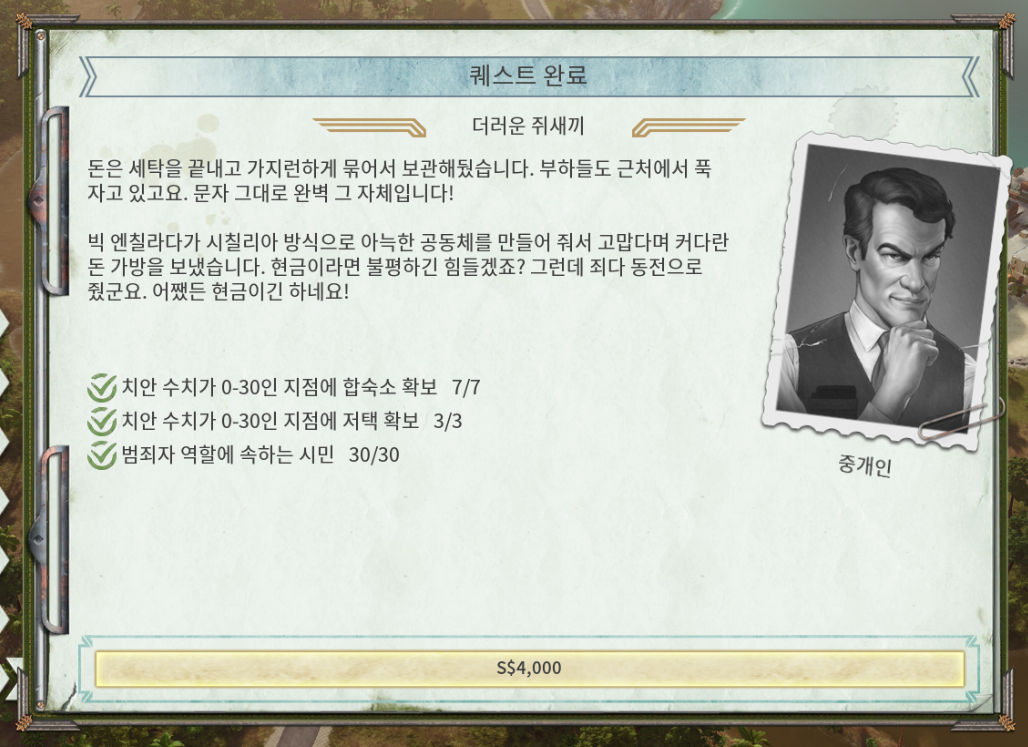 나머지 항구쪽만 치안을 낮게 유지하면서 퀘스트를 진행하면 된다
