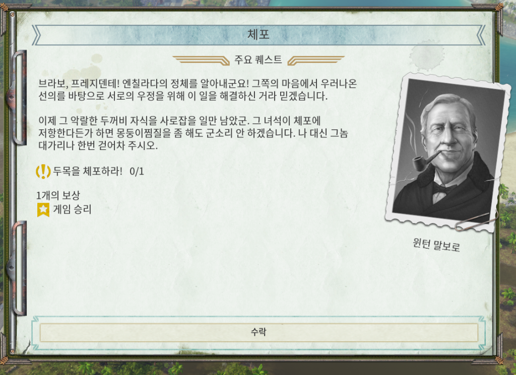 이후 해적 소굴을 짓고 럼주 수출 무역로 계약을 이행하라고 하는데