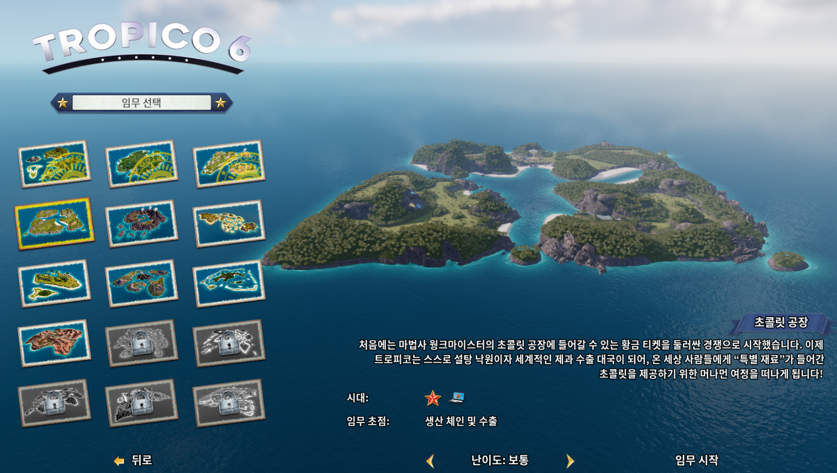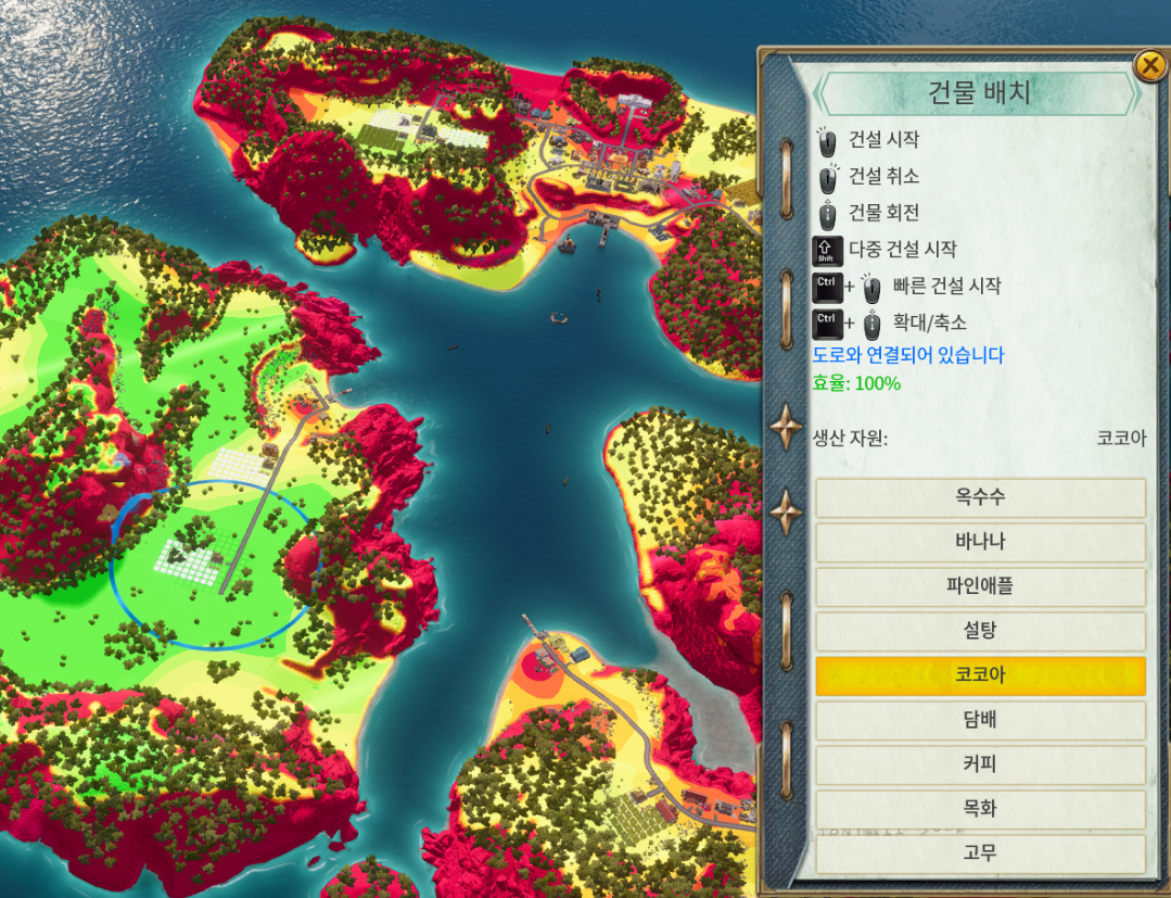 코코아는 왼쪽 섬에 농장을 지어주면 된다