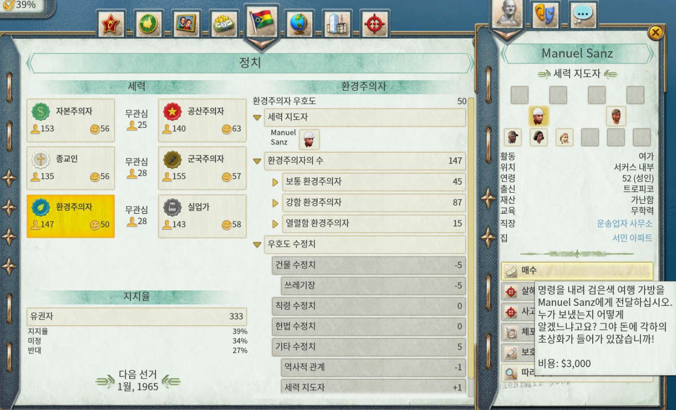 일단 중개인을 통해서 파벌 우호도를 사면 되는데