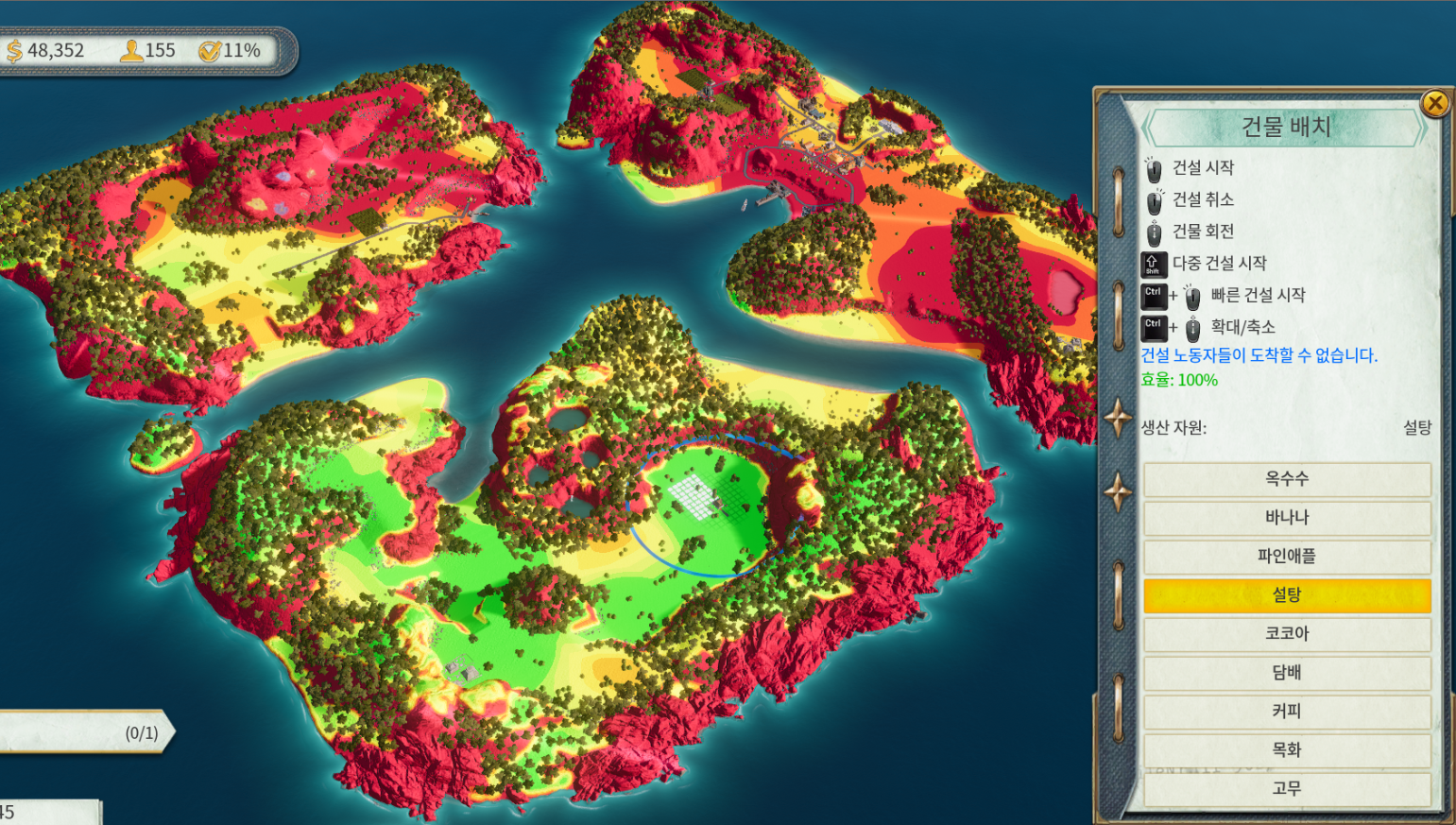 하단 섬에는 설탕 효율이 높으므로 설탕 농장을 지어주자