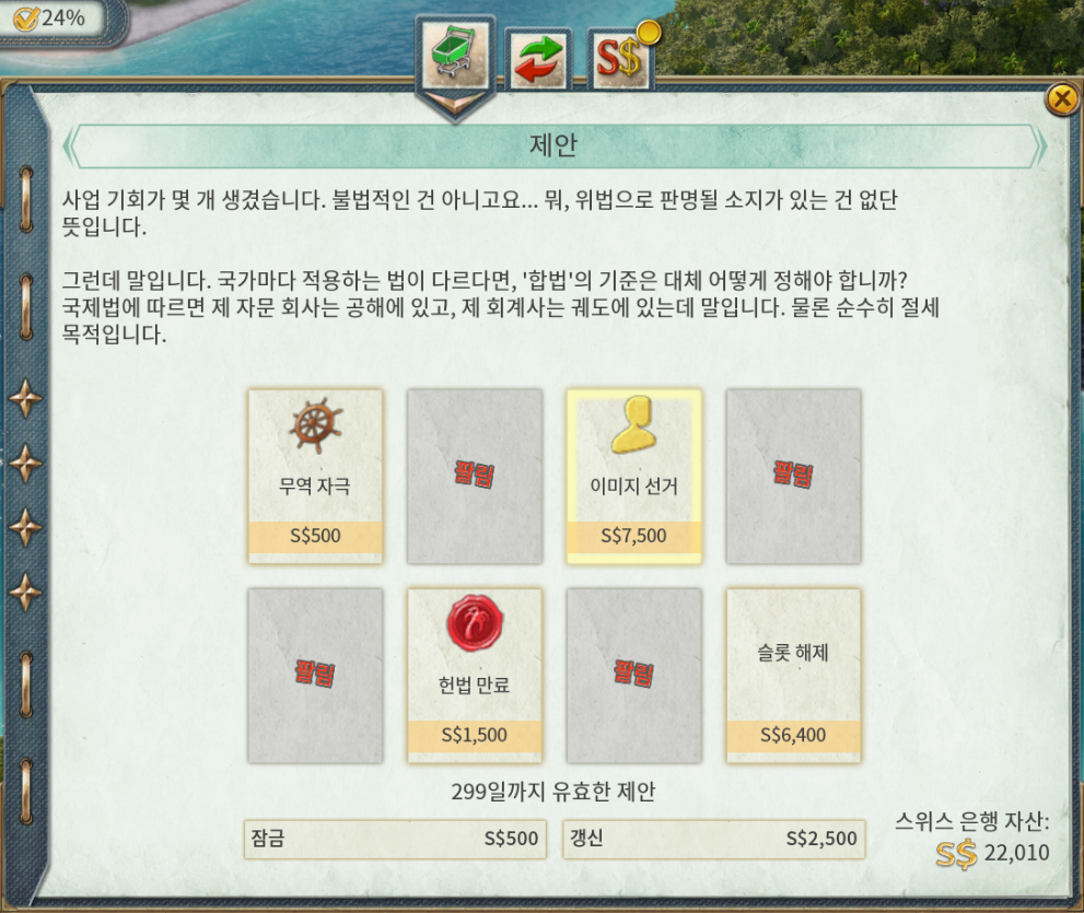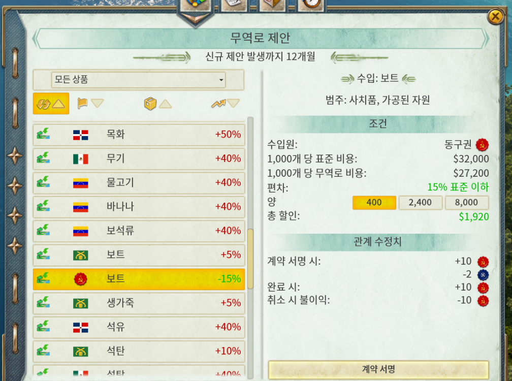 이게 한 세력에 수출계약을 맺으면 다른 세력과의 우호도가 까이는데