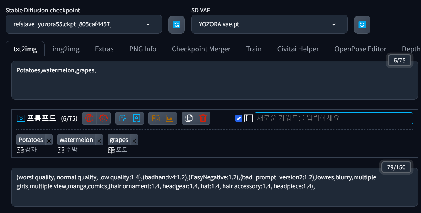 모든 비영어권 키워드를 영어로 변경 > 입력한 프롬프트를 번역해서 넣어줌
