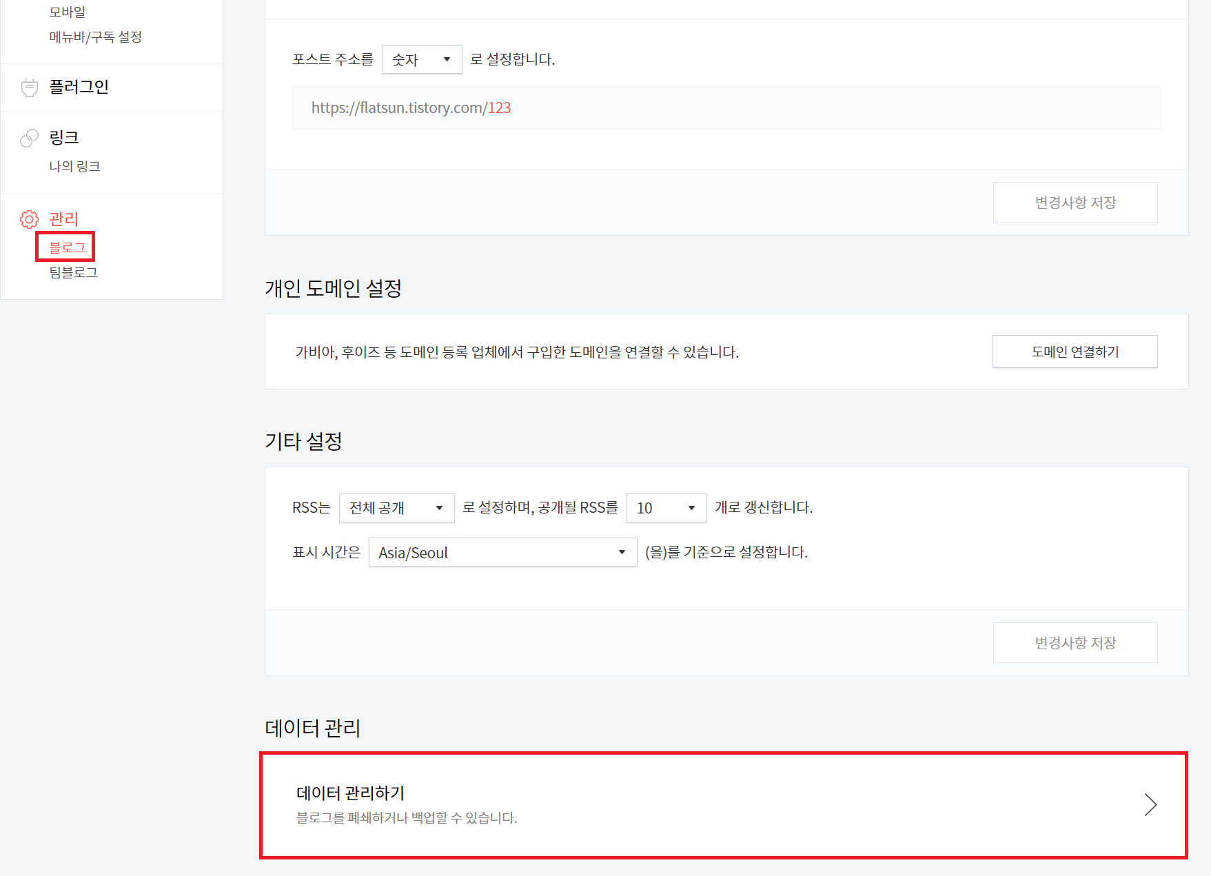 티스토리에서 블로그 내 데이터를 백업해주려면