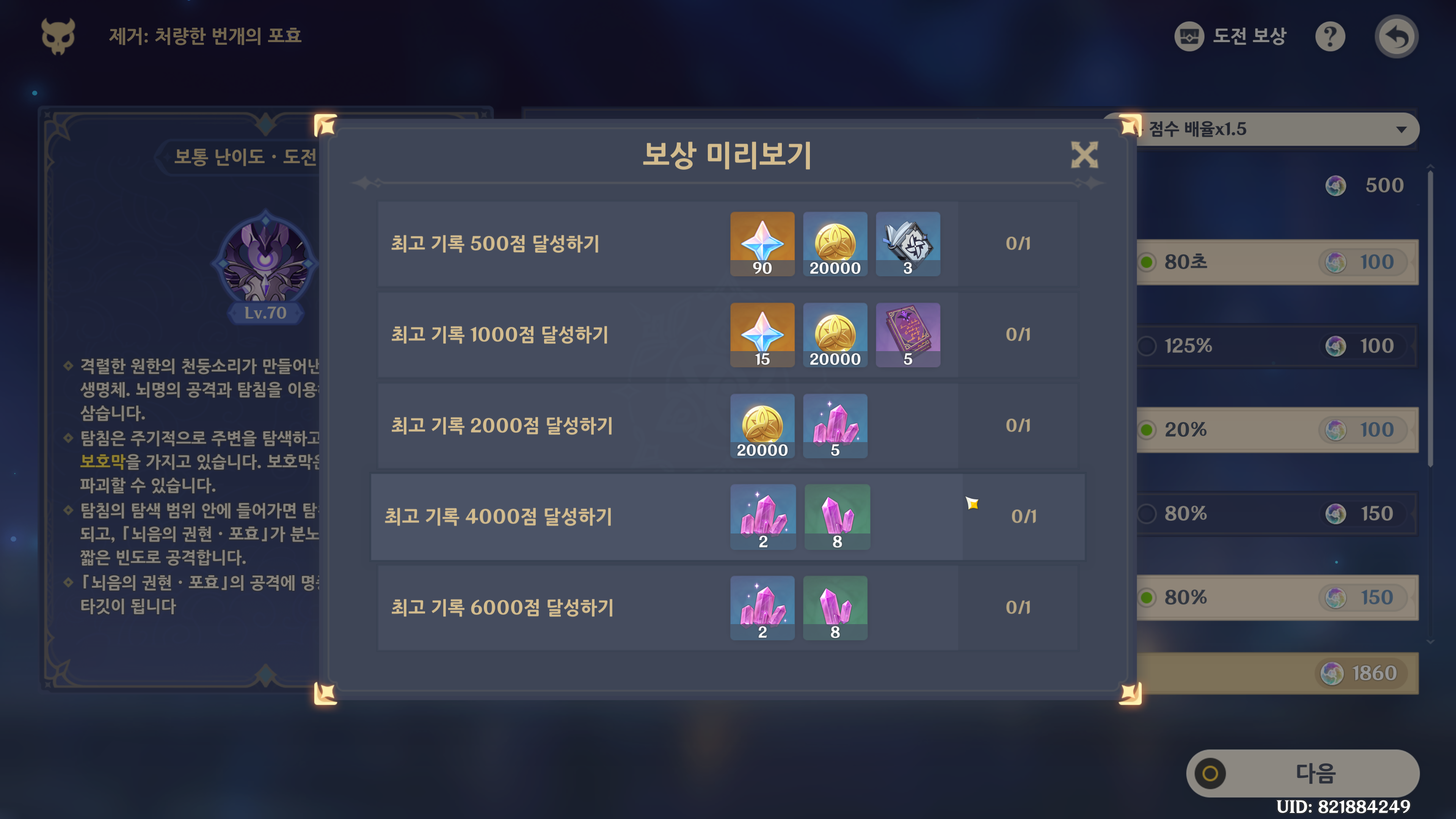 1000점을 넘겨 원석 보상을 챙겨주면 끝이다