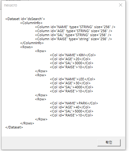 넥사크로에서 데이터셋은 조회해서 데이터셋을 가져올 경우