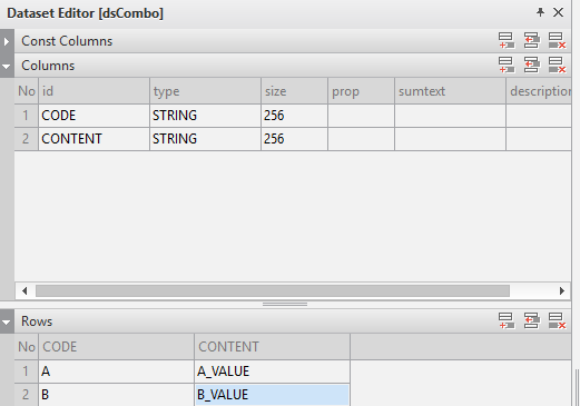 Bind InnerDataset "dsCombo" 를 눌러주자