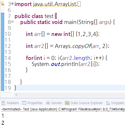 arr2 배열에 Arrays.copyOf(arr, 2); 로 복사를 해 주니