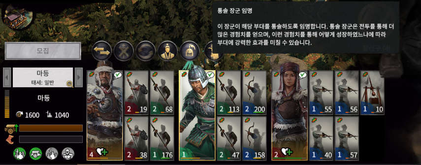 위 스크린샷처럼 장수를 클릭한 뒤 통솔 장군 임명 버튼을 눌러주면 된다