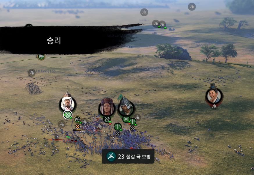 좌우측의 궁기병들을 뒤에서 돌격시켜서 싸먹으면 저렇게 다 백기들고 도망간다