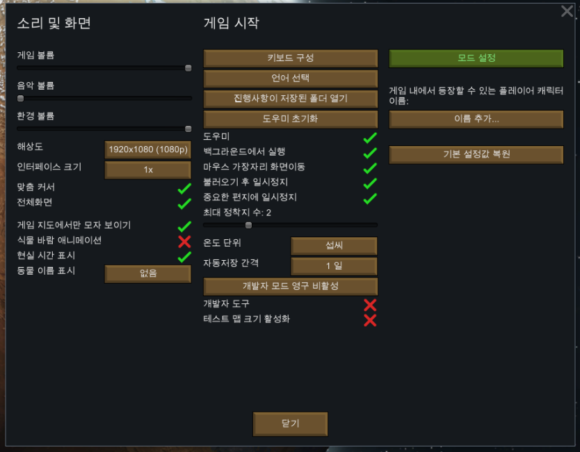 여기서 끝난 것이 아니고 모드 적용이 끝나면 환경 설정을 누른 뒤
