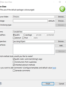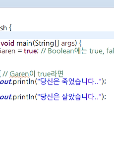 반응형 IT/Java59 자바 if문 알아보기 이번에는 자바의 if문에 대해 알아보자영어시간에 다들 졸아서 IF가 뭔지 감이 안 올 수 있는데 if가 만약 ~라면 아닌가조건을 주고 조건이 맞으면 ~, 아니면 ~ 이런 내용을 수행하게 되는데이러한 if나 switch를 자바의 조건문이라 한다 Bush 라는 클래스 파일을 만들어 if를 한번 사용해 보자 롤을 생각하며 간단하게 만들어 봤는데가렌이 부쉬에 있는데 별 생각없이 들어가면 저승으로 가게 된다는 코드다 Garen은 Data형이 Boolean이라 true, false 두 값만 입력이 가능하다 if(Garen) 부분은 Garen이 true일 경우에 수행하겠다는 얘긴데if(Garen == true)로 해도 똑같이 작동한다둘중에 하나 골라잡아서 사용한 뒤 true일 경우에는위 사진처럼 당신은 죽었습니다를 .. 2018. 12. 18. 자바 상수(Constant), 패키지 알아보기 상수 얘기하기 전에상수란? 구글에 쳐보니까 정해진 수량이라고 나오는데한번 정하면 변경 불가능한 값이라는 얘기다 상수를 쓰면 가독성이 향상되고, 프로그램 작성시 사용할 기준값을 설정하는데 쓴다고 하는데 포인트는 상수는 class 영역에서만 작성 가능하고가급적이면 대문자로 써야 한다는 것이다 public static final 데이터형 상수명 = 값;이런 식인데 그림으로 한번 보면 int와 String의 형태로 상수를 초기화하고 값을 입력해 보았다이제 출력을 하면 당연히 잘 나온다.. 이건 당연한 거고 상수는 고정값이기 때문에 값 변경이 안된다 값을 바꾸려고 하면 이렇게 에러가 난다 public static final int ~~ 이러면 상수인데여기서 public은 아무데서나 다 갖다 쓸 수 있다는 말이고s.. 2018. 12. 17. 자바 변수 초기화와 할당, instance(member), class(static), local 변수 구분하기 변수(Variable)란?- 프로그램에 값을 일시적으로 저장하는 공간- 가독성을 향상시킨다 대충 이런 의미를 가지고 있는데말만 들어서는 별로 이해가 안 간다 int i = 1;String a = "하하"; 이런 식으로 사용하곤 하는데아까 이클립스 깔았는데 이런거 써봤자 이해가 잘 가지 않는다 그냥 그림으로 보도록 하자 먼저 이클립스에서 새 클래스를 만들어 주는데변수 연습할 거니 VariableTest로 이름을 정하던가아니면 hahahoho로 하던가 정한 후 public static void main(String[] args)를 체크하고 Finish를 누르자 Finish 하고 두줄 작성해 봤는데변수는 일단 초기화를 해야 되는데 내가 ㅁㅁ 타입의 누구요라고 지정해준다고 보면 된다예제의 경우에는 String .. 2018. 12. 13. 자바 Hello World 출력해보기 이클립스를 실행하고 나면이런 창이 뜨는데대략 정신이 아득해진다. 그냥 공부하기도 싫은데집에와서 공부하려니 더 하기 싫지만오늘은 Hello World라도 쓰고 탱자탱자 놀아보자 먼저 좌측 Package Explorer 쪽 공백 화면에 마우스 커서를 가져간 뒤에오른쪽 마우스를 누르면 new가 보이는데 new->Java Project를 눌러보자 Java Project를 누르면이렇게 입력하는 창이 보이는데어디 제출할 것도 아니니처음 만든 기념으로 First라 이름을 쓰고 Finish를 누르자 만들고 나면 Package Explorer 하단에 First라고 이름지은 자바 프로젝트가 보이는데여기서 다시 오른쪽 마우스를 한 뒤에 new -> class를 눌러보자 이제는 클래스명도 지어줘야 되는데귀찮으니까 firstC.. 2018. 12. 12. 자바 환경변수 설정 및 설정하는 이유 알아보기 자바 책을 사거나 자바 강의를 들으면 환경변수부터 설정하라고 하는데뭔가 굉장히 중요한거라 설정하라고 하는 거겠지만대부분은 환경변수 설정하면서도 왜 하는건지도 모른다 이제 왜 하는건지도 모르는 환경변수 설정을 해보자 https://www.java.com/ko/download/help/path.xml 위의 링크를 타고 자바 홈페이지를 가보면환경변수를 설정하는 법이 나오는데그림도 없다보니 보기도 싫고 이해도 어렵다 윈도우 10이면 그냥 아래 그림을 따라하자 먼저 윈도우 키를 누르고 제어판을 검색해서 제어판에 들어가자제어판으로 들어오고 나면 우측 상단에 검색창에 고급 시스템 설정으로 검색하면저렇게 시스템과 고급 시스템 설정 보기가 나오는데고급 시스템 설정 보기를 누르자 사실 윈도우 키 누르고 고급 시스템 설정 .. 2018. 12. 10. 이전 1 ··· 7 8 9 10 다음 반응형