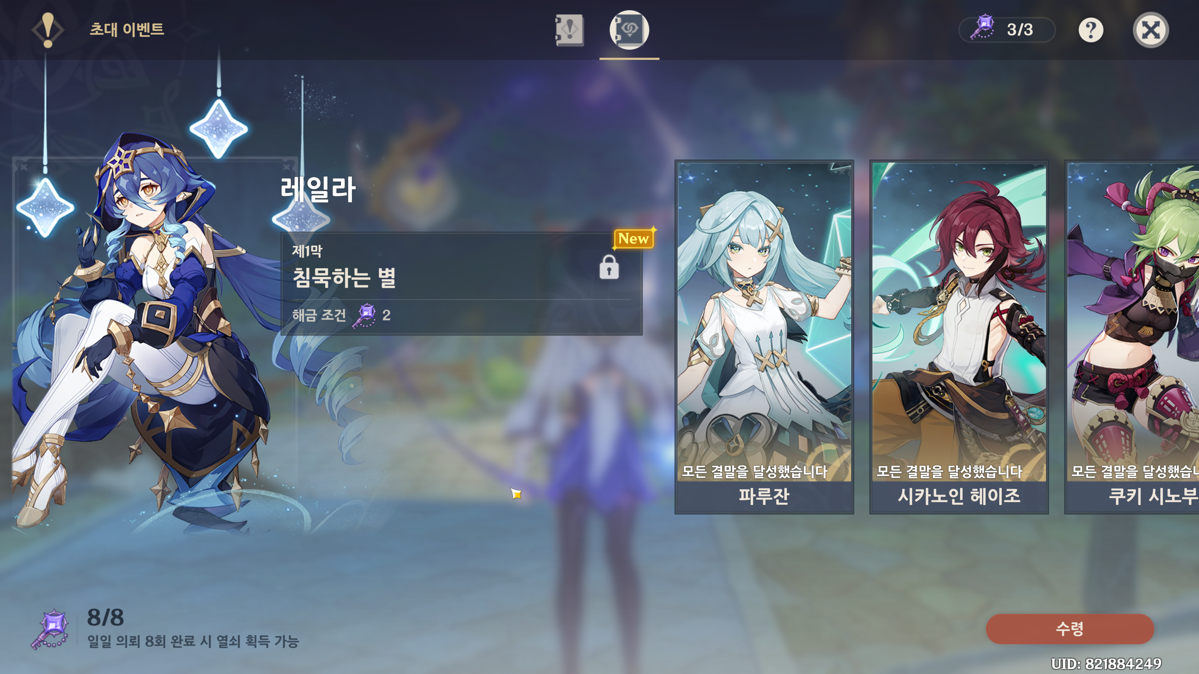 원신 초대 이벤트 레일라 전체 분기 공략방법
