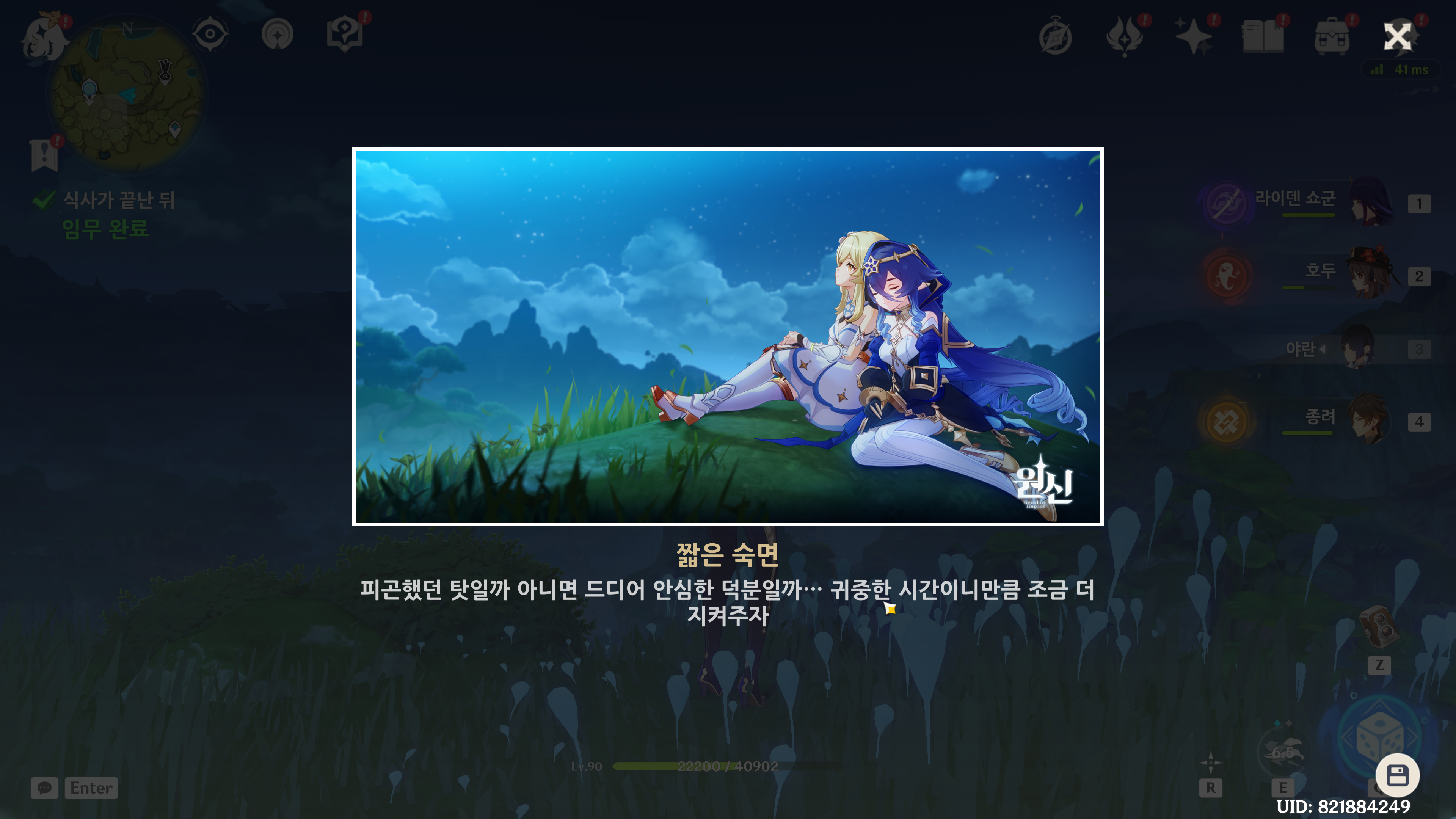 > 짧은 숙면 엔딩